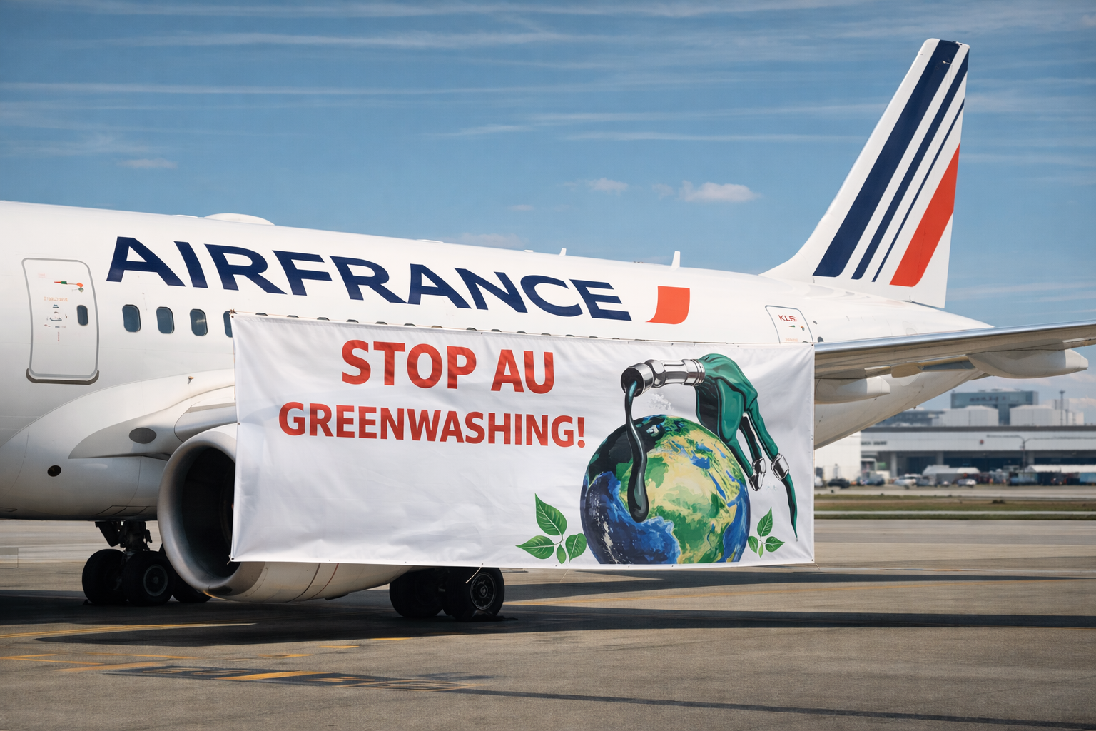 Air France doit cesser de tromper ses passagers. Stop au greenwashing ! Air France dit vouloir s’engager dans la transition écologique du secteur aérien. C’est une bonne chose en soi, car les défis sont grands et tous les leviers doivent être utilisés. Mais le greenwashing est inacceptable ! Or Air